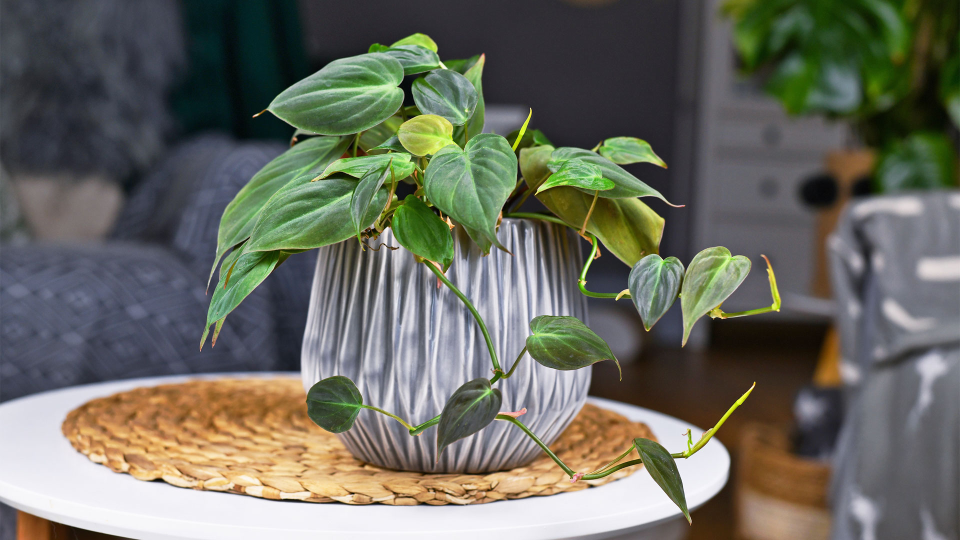 Si vous avez envie d’une belle plante suspendue, le philodendron grimpant est la plante qu’il vous faut. Ses belles feuilles en forme de cœur montées sur des tiges qui peuvent devenir très longues, retombent au hasard, ce qui rend cette plante parfaite dans un beau support de macramé. Assurez-vous de laisser sécher les 2 à 3 premiers centimètres de terreau avant de lui donner de l’eau. Si vous laissez le terreau humide en permanence, vous risquez la pourriture des racines. Il est si peu exigeant que vous pouvez même oublier de l’arroser pendant un certain temps sans conséquence.