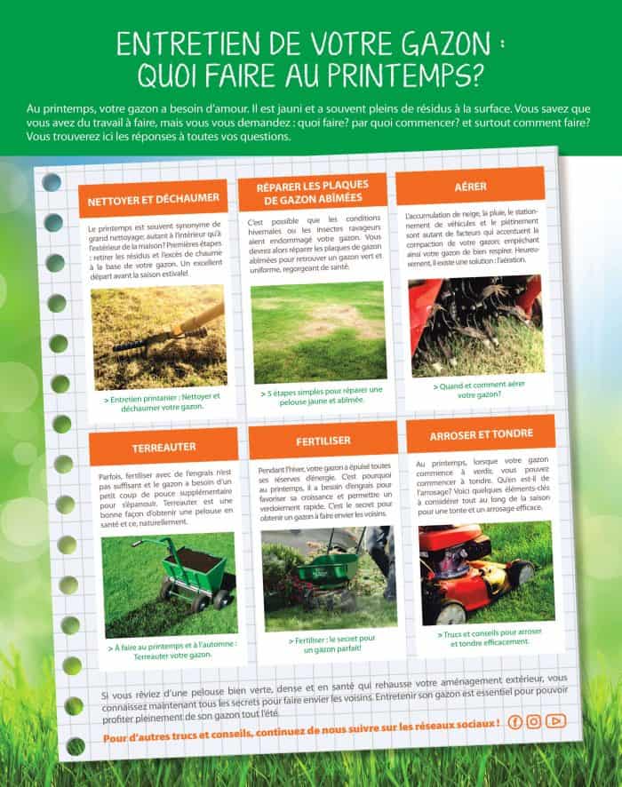 Pour tout savoir sur l’entretien printanier de votre gazon, consultez notre Calendrier Pelouse.