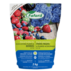 Fafard’s Acid loving plant and berry soil mix is specially designed for these plants. Apply it by mixing it in equal parts with the existing soil.